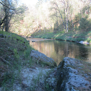 Trip with Lorraine; stayed at hotel; one-nighter. Arrived on Friday; mowed, picked up debris on trails. We transplanted some ferns and trillium, along with planting some split miniature bleeding hearts and coral bells into the bags, watering them well with water from the stream. We had a nice fire at night after eating at Rosario's (best pizza around!!). On Saturday, I did some work in the morning, but then we spent some time in Hatfield at the flea market and searching for Trow Lake. We finally found it. We took off for home in the late afternoon after getting a yearly pass to Jackson County parks, so now we can shower at the Lake Arbutus campgrounds.